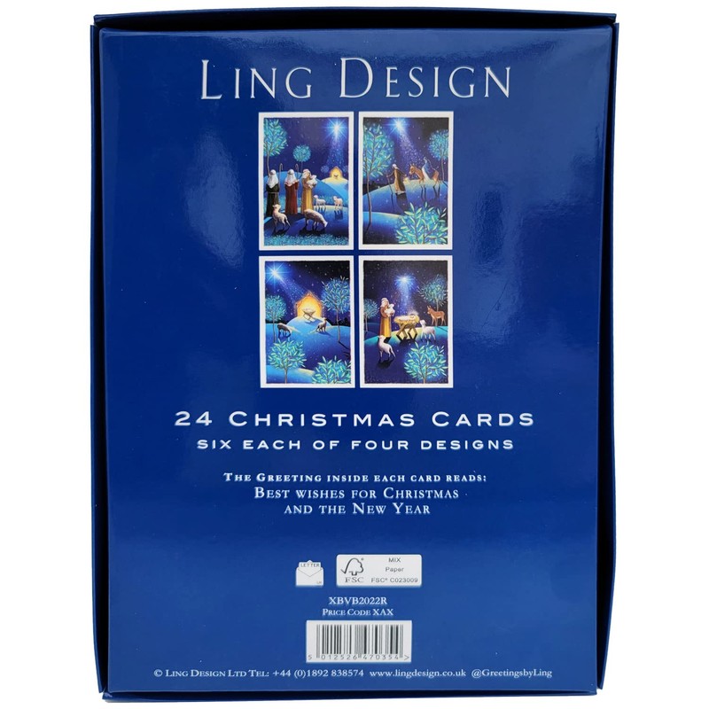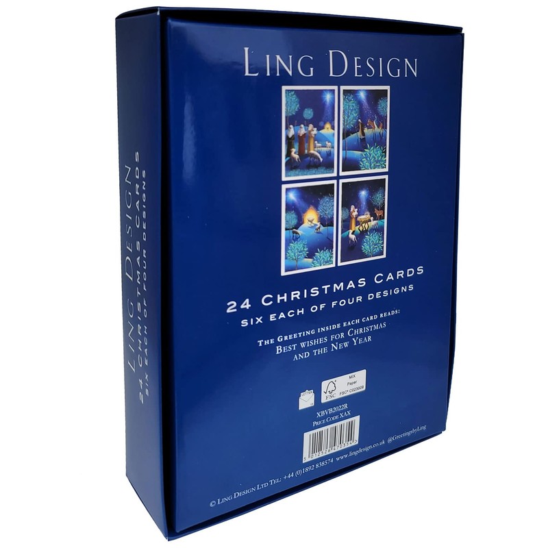 • Details: A Box of 24 Christmas cards in 4 assorted designs from Ling Design, presented in a box and complete with white envelopes.
