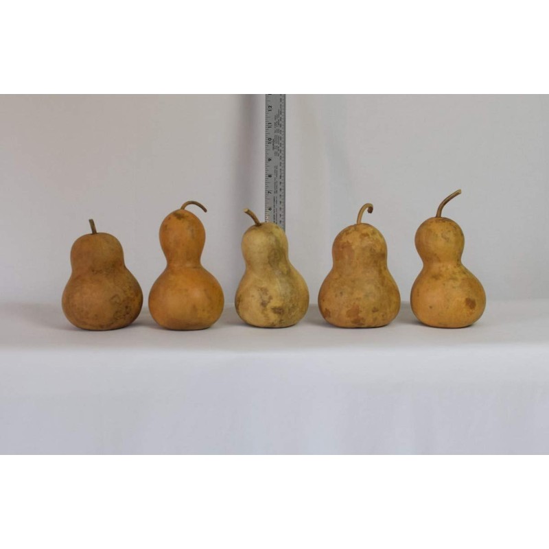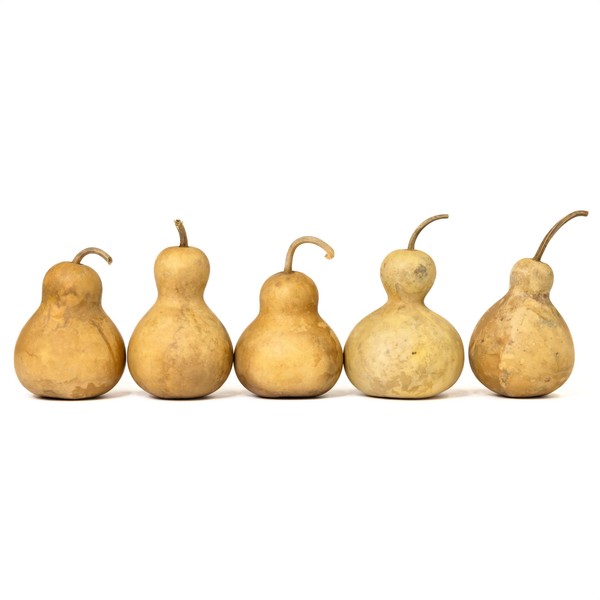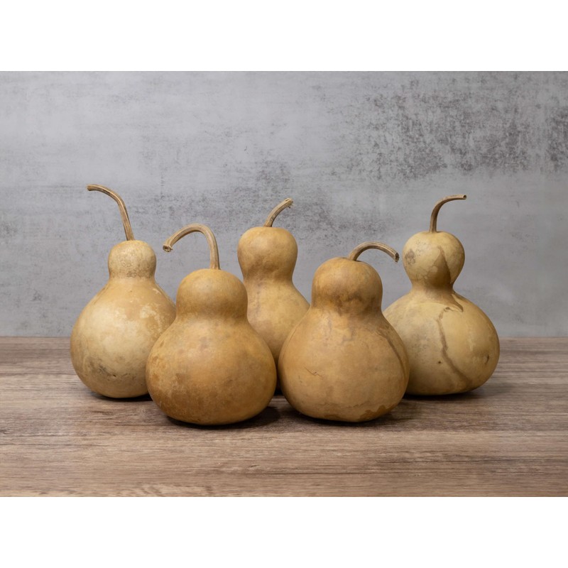 - INCLUDES: Box of 5 dried hard shell Bottle variety gourds between 4 and 5 inches in diameter with exteriors ready for crafting and decorating.
