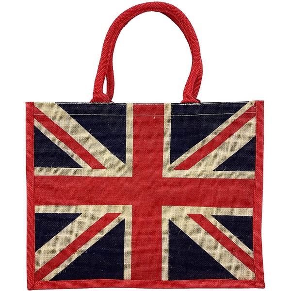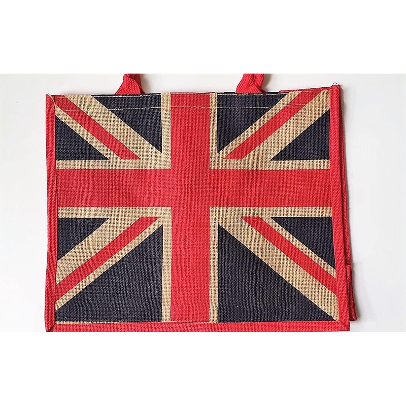 Box Shaped Eco Friendly Jute Shopping Bag with Gusset (Union Jack)