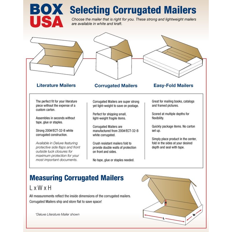 BOX USA BML732 Literature Mailers, 7" x 3 5/8" x 2 1/8", White (Pack of 50)