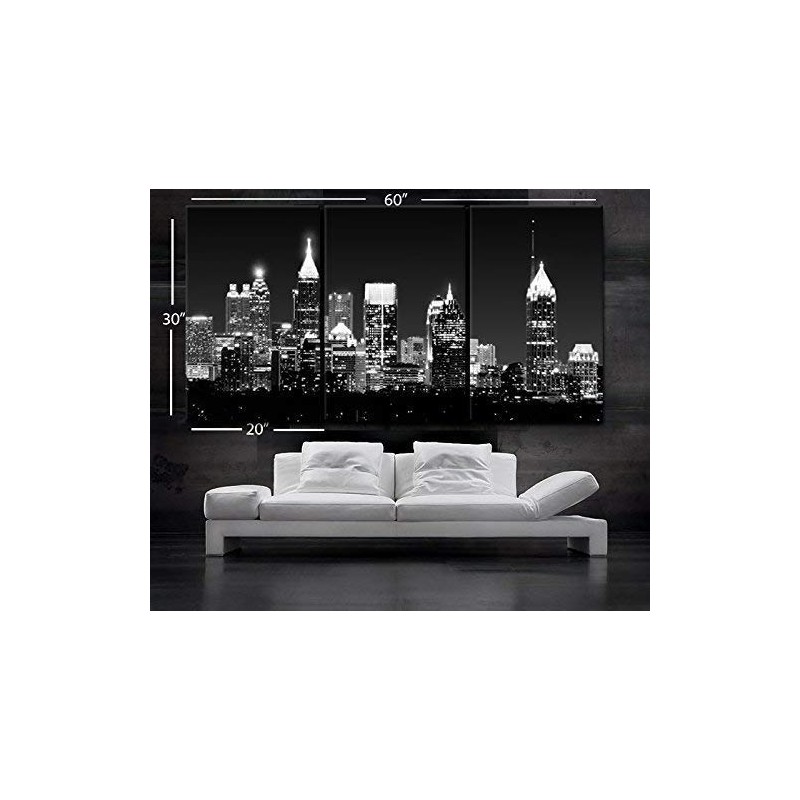 BoxColors - Large 30"x 60" 3 Panels 30"x20" Ea Art Canvas Print Beautiful Atlanta Skyline Light Buildings Wall Home (Included Framed 1.5" Depth)