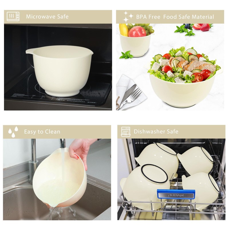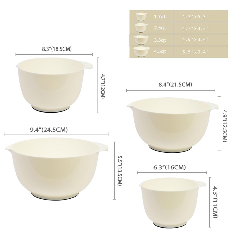 BoxedHome Mixing Bowl Set Mixing Bowl Set Plastic Salad Bowl Non-Slip Stackable Serving Bowls for Kitchen Mixing Bowl Set 4-Piece Beige Reusable Mixing Bowl