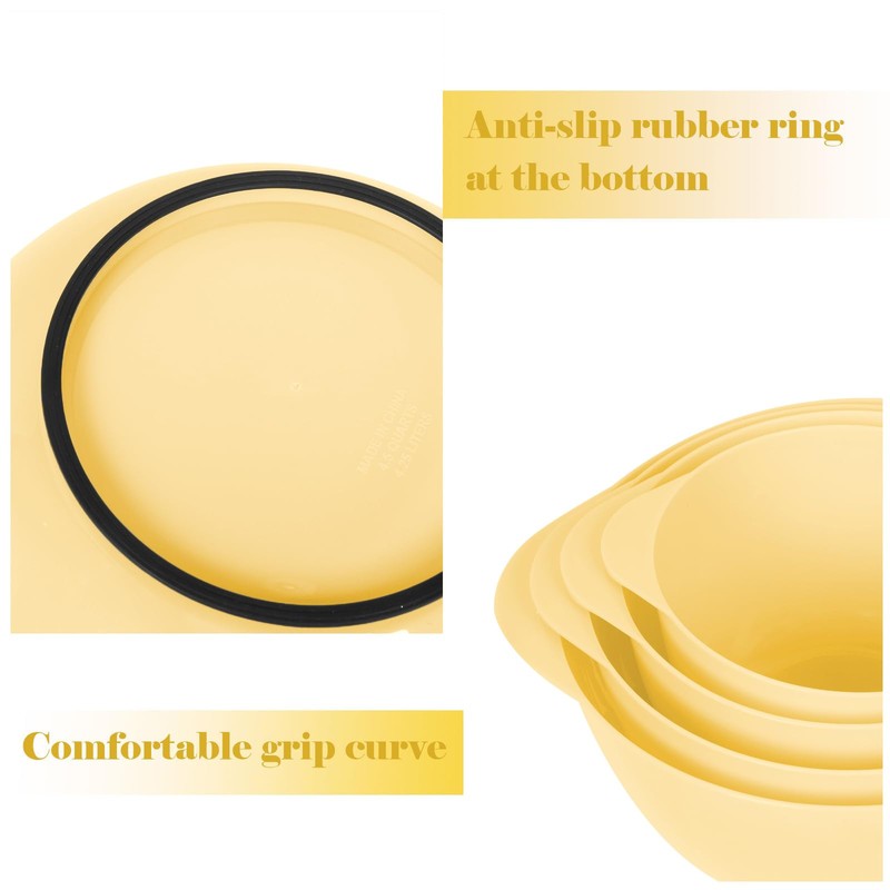 - 【Anti-Slip Base & Practical】There is non-slip rubber at the bottom of the plastic bowl, it can prevent slipping efficiently during the mixing. And compared with traditional mixing bowls, they are resistant to impact and lightweight enough, you will not worry about the smash, rust, or too heavy to handle at all. Versatile in use, not only does it can used as mixing bowl, double as convenient containers as fruit bowl, salad bowl, batter bowl, cereal bowl, vegetable bowl or even as popcorn bowl.