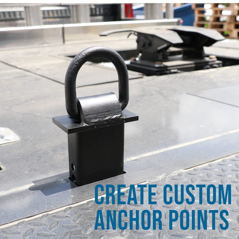 - [VERSATILE] The D rings allow you to attach different anchors such as J Hooks, Straps, Grab Hooks, Shackles, Chains, and more. The Stake Pocket D-ring will also have 4 holes to adjust the height to fit your cargo tie down needs. Each pocket D-ring will come with a hitch pin along with a safety pin to ensure security.