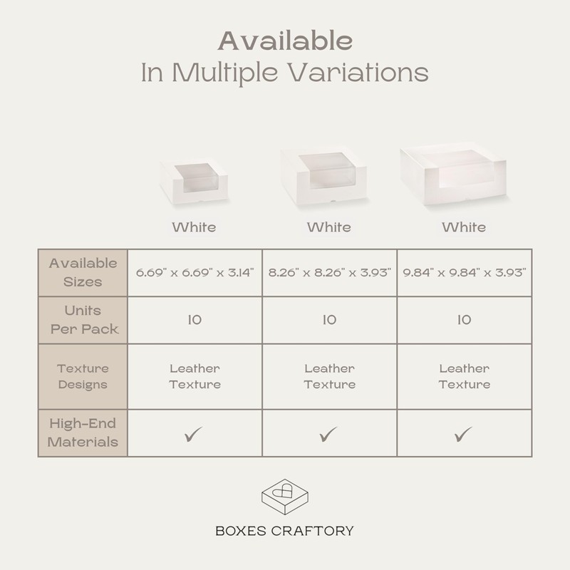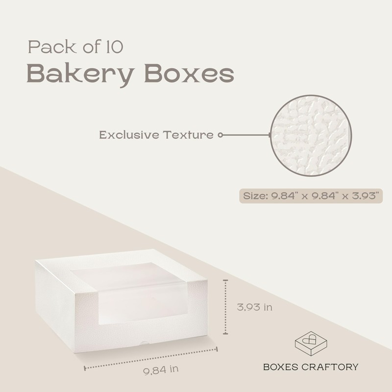 Boxes Craftory Boxes Craftory Pack of 10 Cake Boxes with Window (9.84" x 9.84" x 3.93") - Ideal for Bakery, Cookie and Donut - White Leather