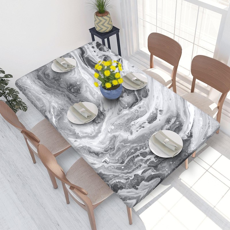 BOXIMIAO Tablecloth with Elastic Edge White Grey Marble Texture Rectangle Waterproof Oil-Proof Table Cloth Washable Reusable Table Cover for Kitchen Dining, 4FT