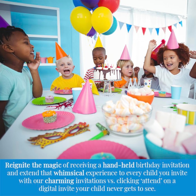 - Fill-In Spaces for B-Day Details: Fill In Lines give you plenty of room to write in your child's name & age, party time & location, plus how to RSVP.