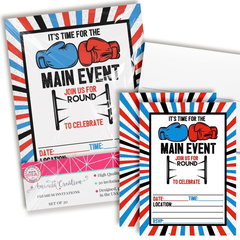 Boxing Birthday Party Invitations for Boys, 20 5x7 Fill In Cards with 20 White Envelopes by AmandaCreation
