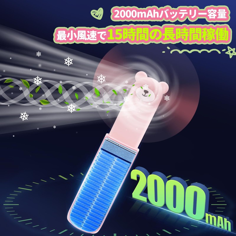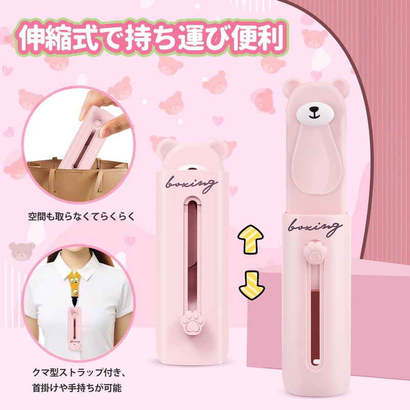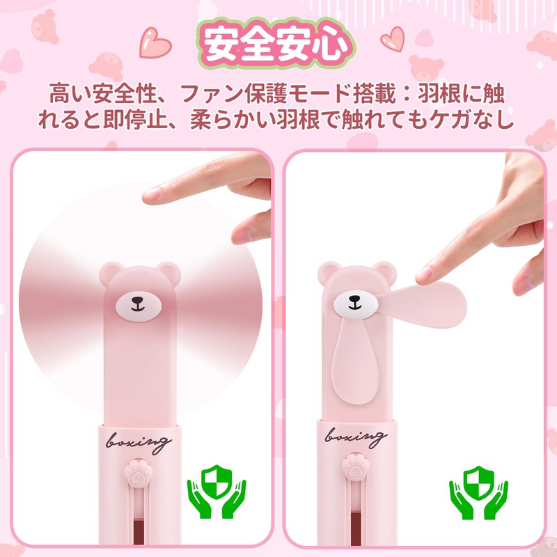 BOXING Handy Fan, 2025, Cute Bear Design, 2 Levels, Silent, 3-Way (Handheld, Neck Mount, Tabletop), Type-C Compatible, Small, Portable FS-300, Pink