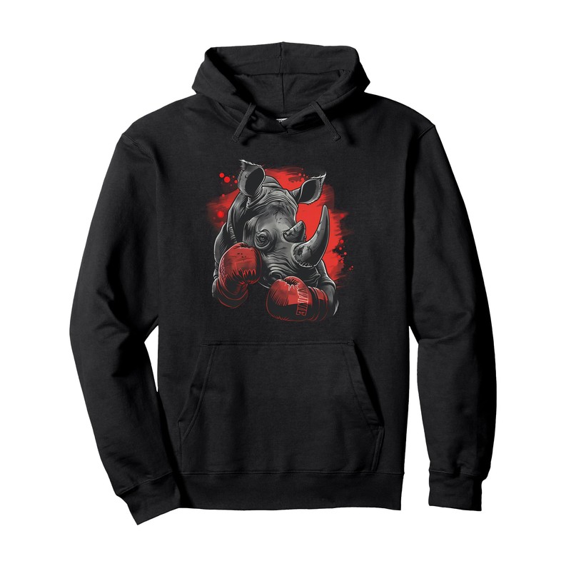 Boxing Rhino Boxing Gloves Kickboxing Funny Boxer Rhinoceros Pullover Hoodie