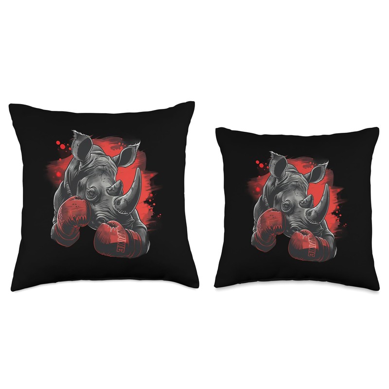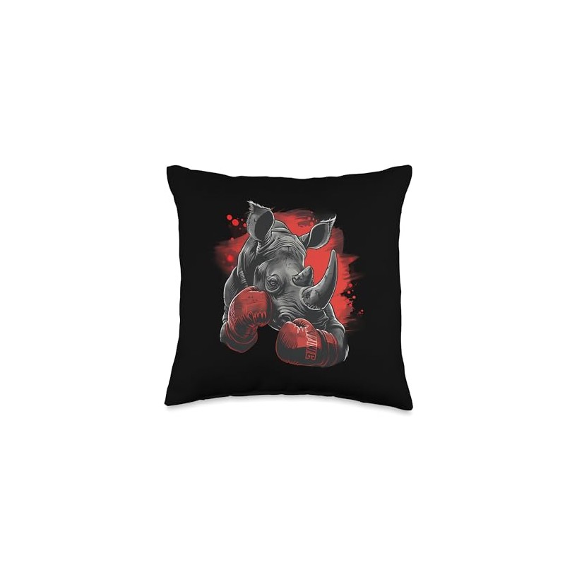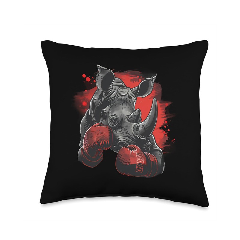Boxing Rhino Boxing Gloves Kickboxing Funny Boxer Rhinoceros Throw Pillow
