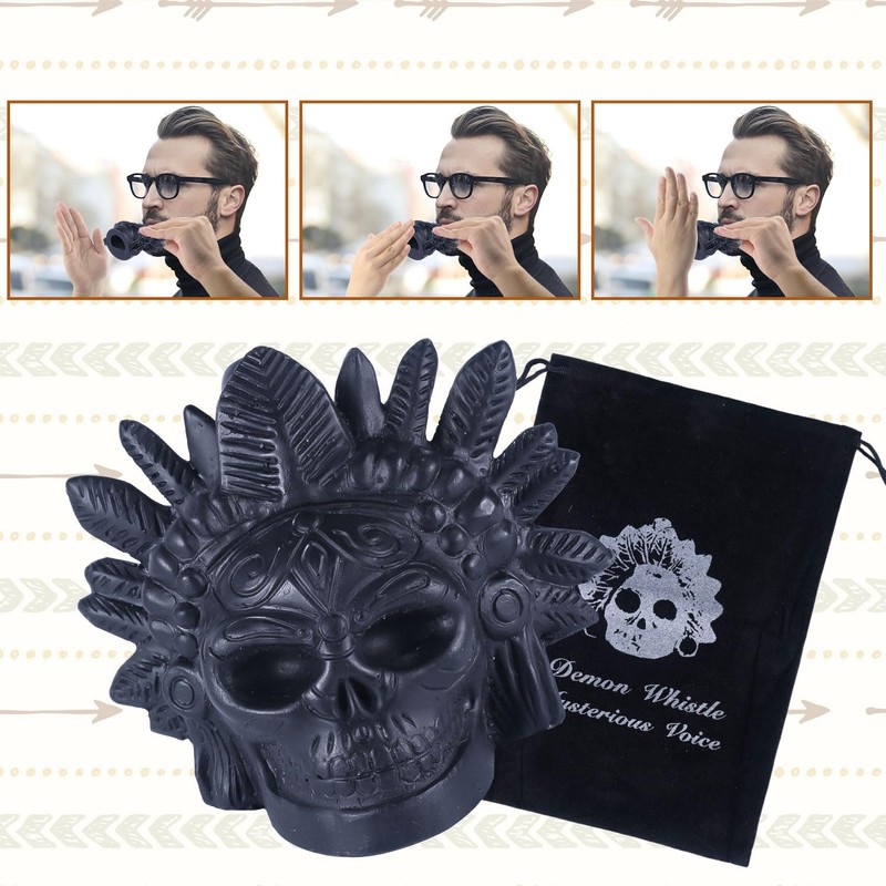 BOXOB Aztec Death Whistle, Authentic Human Sound Screaming Skull Aztec Whistle with Storage Bag Gift for Halloween Mexican Day of the Dead Collection (Black)