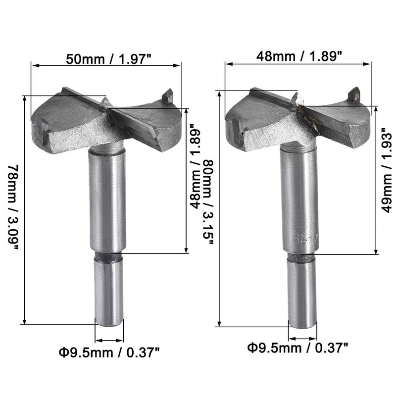 Boxonly 2Pcs Woodworking Hole Opener Drill Bit 48mm+50mm Forstner Drill Bits Tungsten Carbide Wood Hole Saw Hinge Drilling Boring Bit Cutter