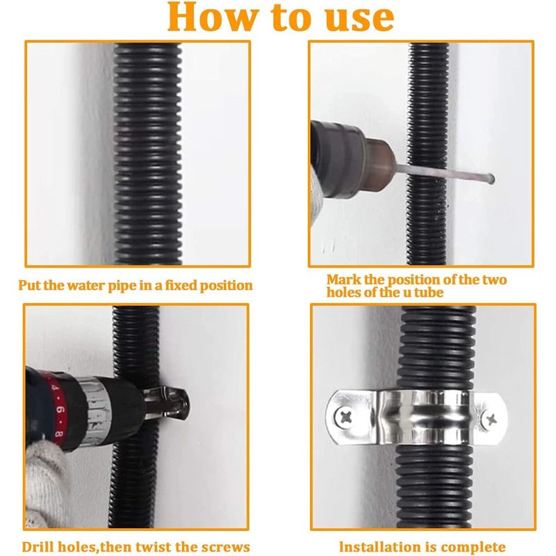 - Easy Installation: It is very easy to install and friendly to first-time users. Just put the pipe in a fixed position, mark the holes on both sides of the strap clamp, and then tighten the screws after drilling to fix the pipe very firmly. (the product does not contain screws)