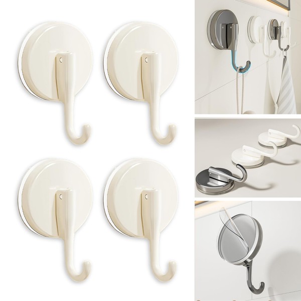 Boxonly Suction Cup Hooks for Shower, Single Hook for Hanging in Shower, Mounting on Glass, Tile, Mirrors, or Metal Surfaces - Cream (4 Pack)