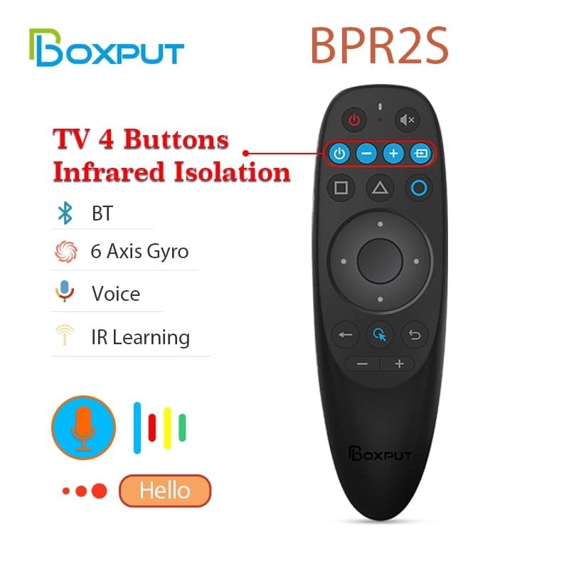 BOXPUT BPR2S BT Voice Remote Control Air Mouse Remote Control Replacement with 6-Axis Gyro Support IR Learning TV 4 Keys IR Isolation for Android TV Box ATV Devies(Not Included Batteries)