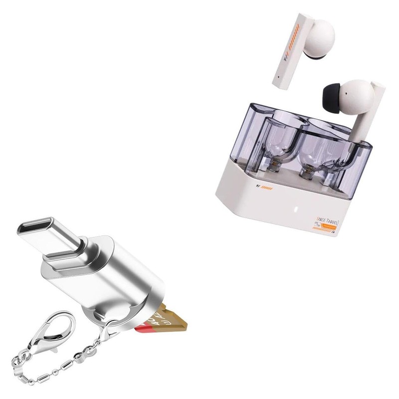 BoxWave Adapter Compatible with Moondrop Space Travel - Micro SD Card miniReader, USB Type-C OTG Reader USB3.0 Adapter Keychain - Metallic Silver
