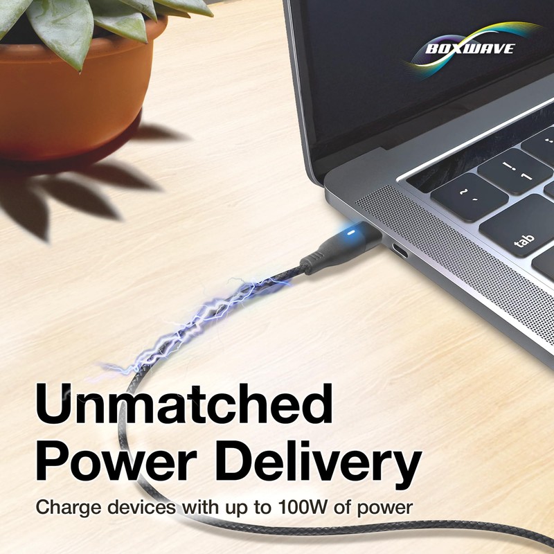 BoxWave Cable Compatible with BLU Studio View XL - MagnetoSnap PD AllCharge Cable (100W), Magnet Charging Braided USB Type-C Micro - Jet Black