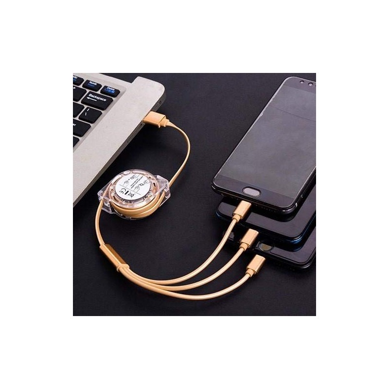 Plug in all 3 connectors to 3 separate devices and charge them all SIMULTANEOUSLY!