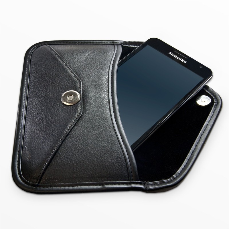 BoxWave Case Compatible with Plum Might Plus 2 - Elite Leather Messenger Pouch, Synthetic Leather Cover Case Envelope Design - Jet Black