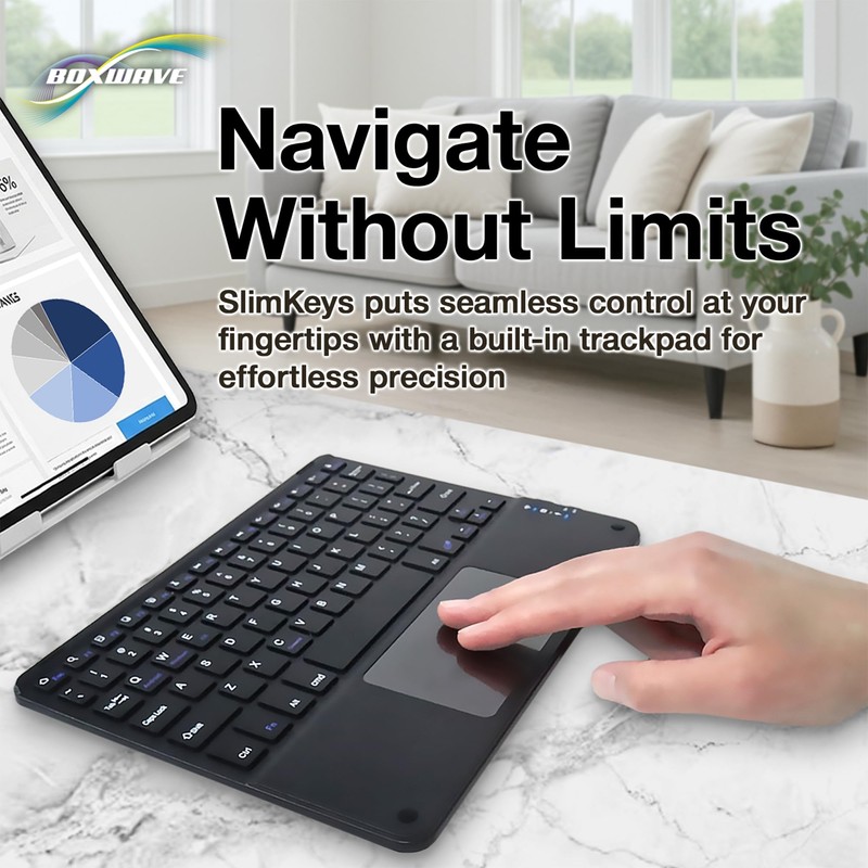 BoxWave Keyboard Compatible with Vanquisher SV-88 Rugged Tablet Thin Design (8 in) - SlimKeys Bluetooth Keyboard with Trackpad, Portable Slim TouchPad - Jet Black