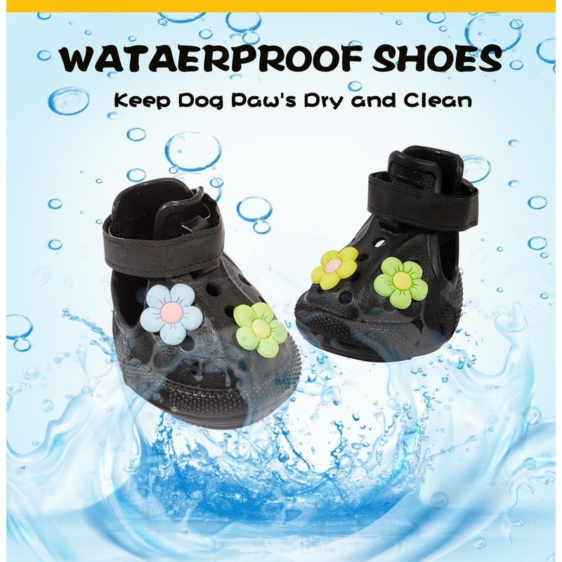 - WATERPROOF & BREATHABLE - Our dog shoes is made of high quality soft and lightweight EVA material with waterproof surface and breathable airflow holes. Keep your dog's paws dry,cool and comfortable. The dog boots is ideal for hot summer and rainy days or snowy winters.