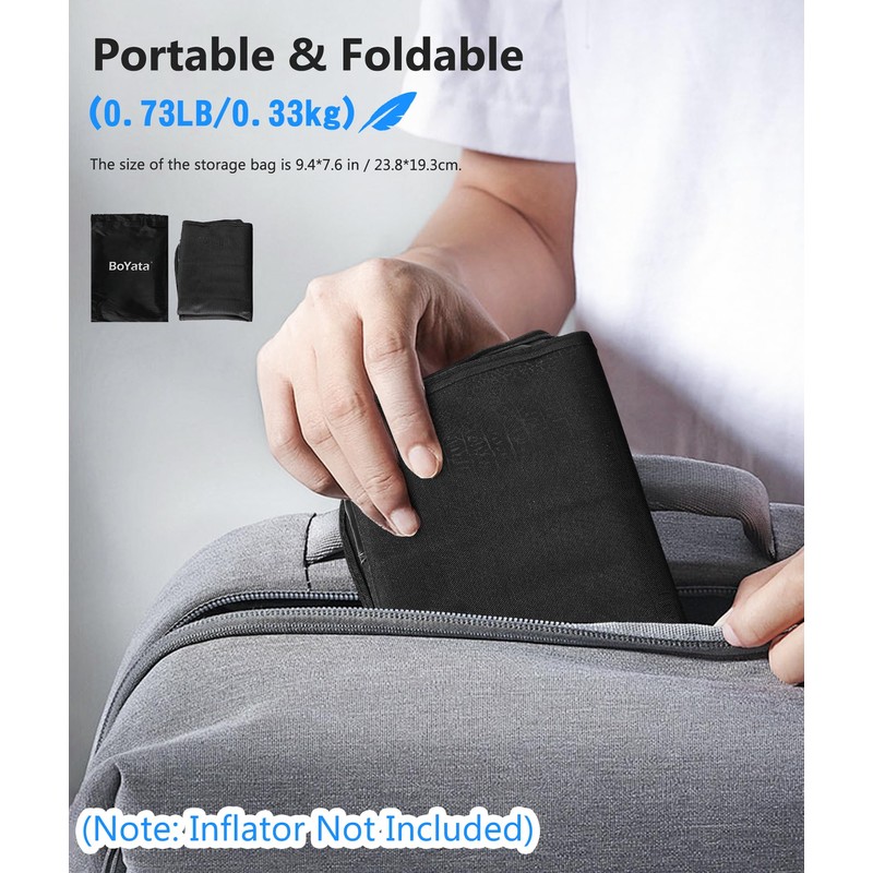 - 【Lightweight, Portable, and Foldable】The inflatable design allows easy portability, folding down to a compact size for storage in cabinets, bags, or suitcases.It combines convenience with space-saving features, making it perfect for outdoor use, subways, and trains.