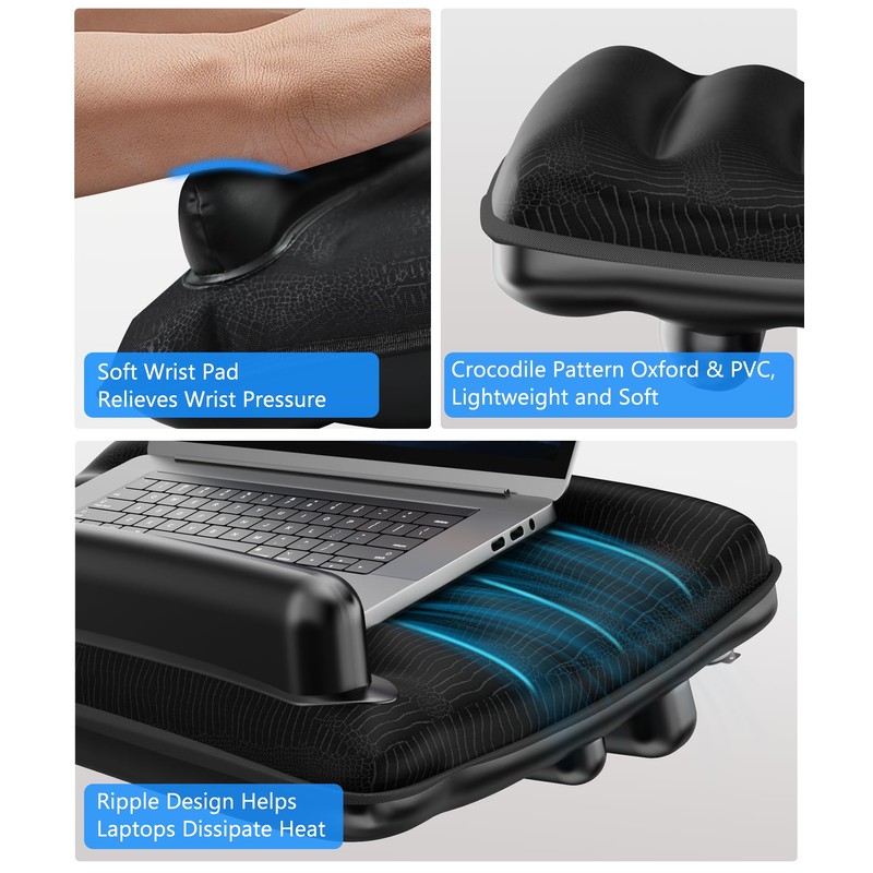 - 【Comfortable Cushion and Wrist Rest】The built-in wrist rest alleviates pressure, enhancing comfort during extended use. The wave-shaped area improves heat dissipation, keeping your laptop cool at home or on the go.