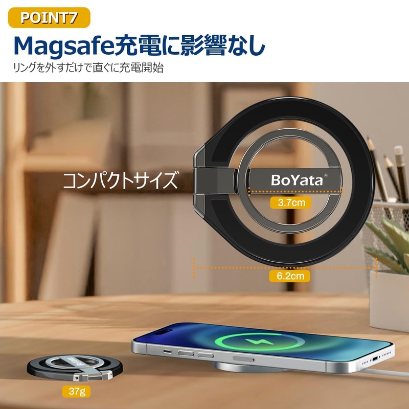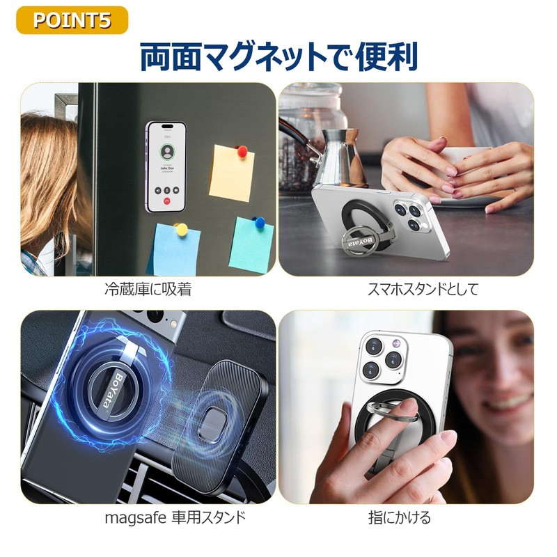 BoYata Magsafe Ring, Magnetic, Smartphone Ring, Double-sided Magnet, Super Strong Magnet, Mobile Phone Ring, Bunker Ring, Ring Holder, Smartphone Ring, Metal Ring, Stand Function, 360° Rotation, Drop
