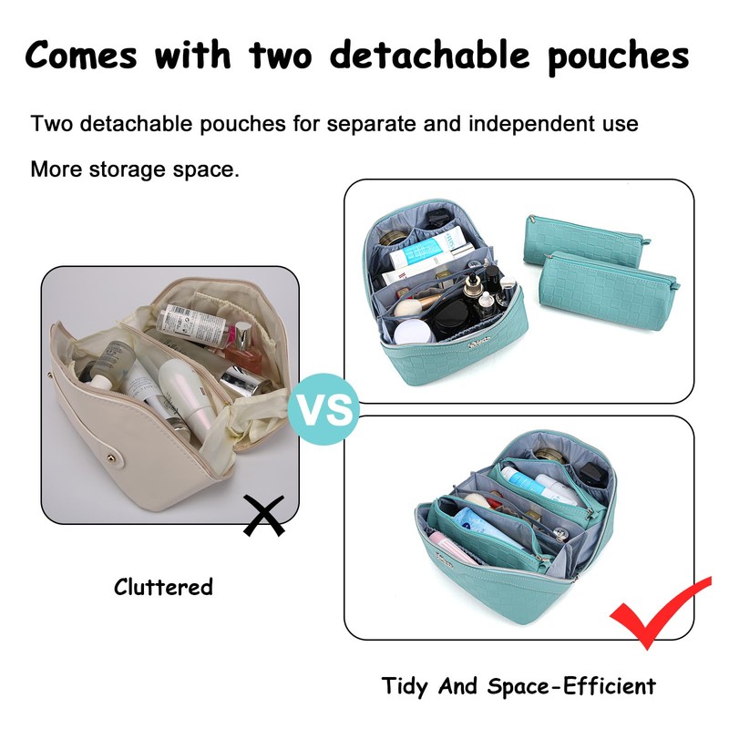 - 3 Pcs Set Travel Makeup Case: BOYATU travel makeup bag with compartment comes with two detachable zipper storage bags and five compartments, ensuring optimal organization for your skincare products and cosmetics. Perfect for your travel, business trips, vacations, outdoor activities and picnics.