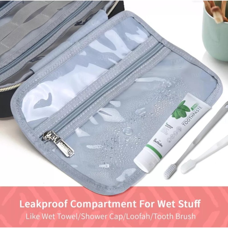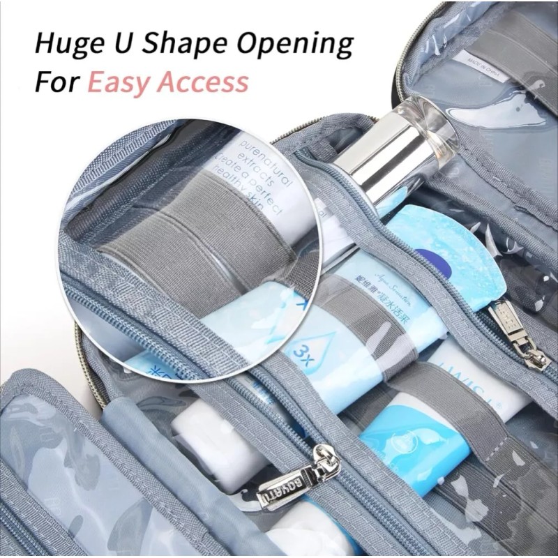 Efficient Hanging Toiletry Bag: This hanging travel toiletry bag features 4 spacious compartments and an exterior pocket, perfect for neatly storing and organizing cosmetics, skincare, and full-size toiletries with ease. The "U" shaped zippered main compartment ensures upright bottle storage.