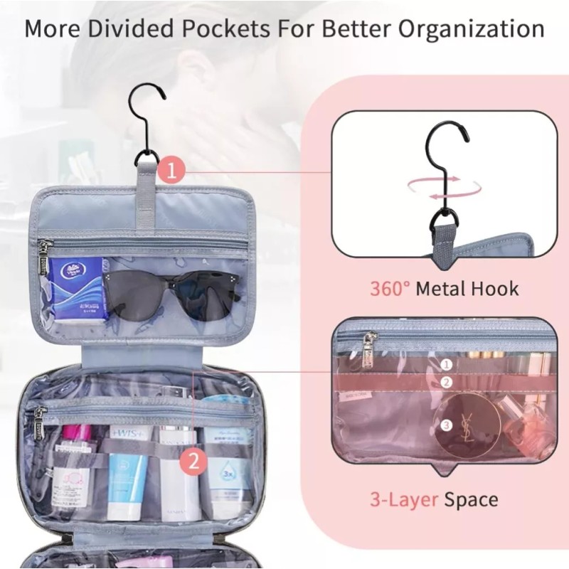 Toiletry Bag for Traveling: Designed with a size of 10.63" L/7.87"H/3.93”W, the BOYATU toiletry bag offers ample space for all your travel essentials. The wider depth and 360° metal hang hook provide secure closure and convenient hanging options.