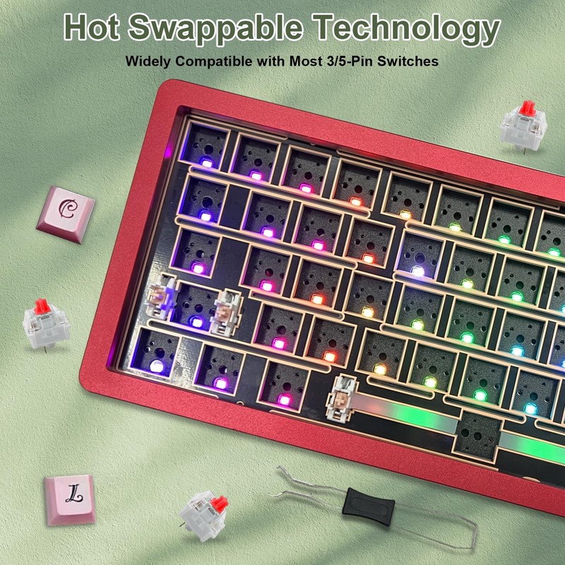- ✅【Hot-Swappable Mechanical Switch】The custom BOYI GMK67 keyboard kit is equipped with hot swappable terminals,which you could install the switches directly without soldering. It’s compatible with Cherry MX switches, Kailh switches and Gateron switches and other 3 pin or 5 pin Mechanical switches.You can easily build up your own mechanical keyboard with this kit. (Please note:This kit only suitable for Mechanical Switch and not suitable for Optical Switch by now)