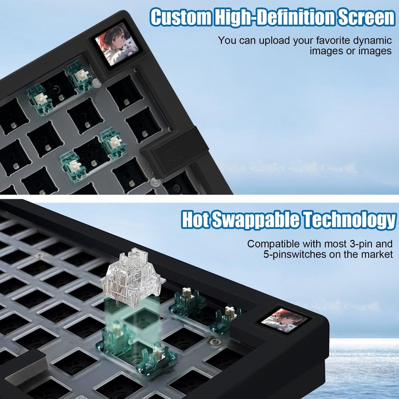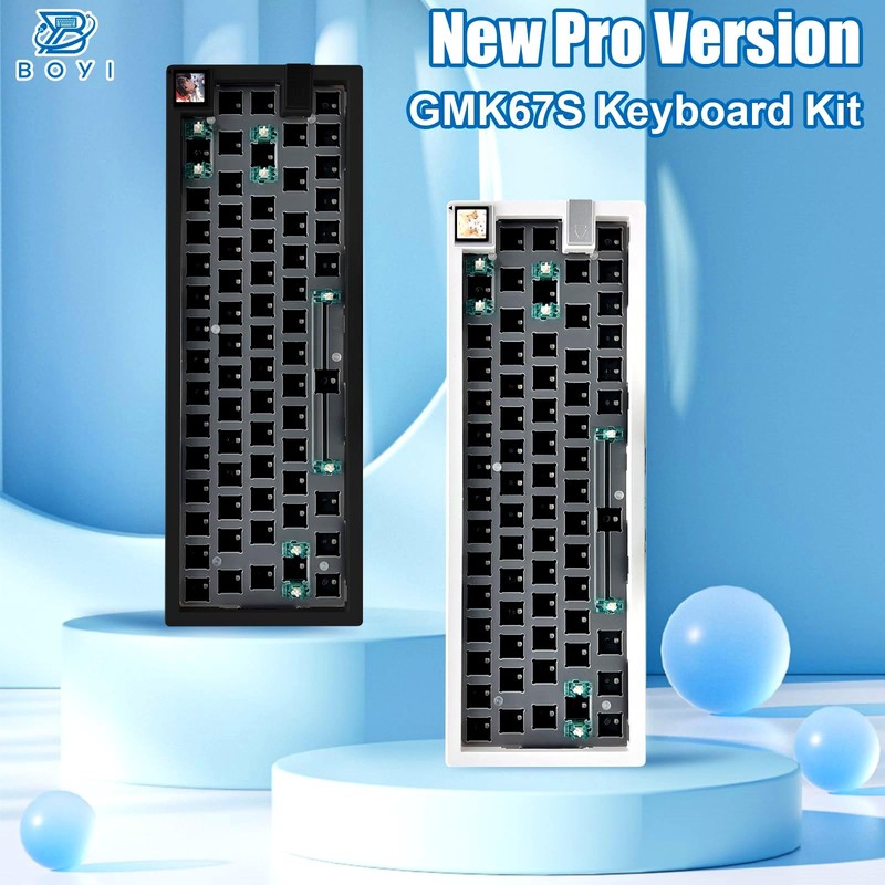 BOYI GMK67S-65% Keyboard Kit,Hot-Swappable BT5.0/2.4G/Type-C Tri-Mode Wireless RGB Mechanical Keyboard Gasket Mounted Kit,Customized South-Facing LED Barebones Kit(Black+LCD Screen)