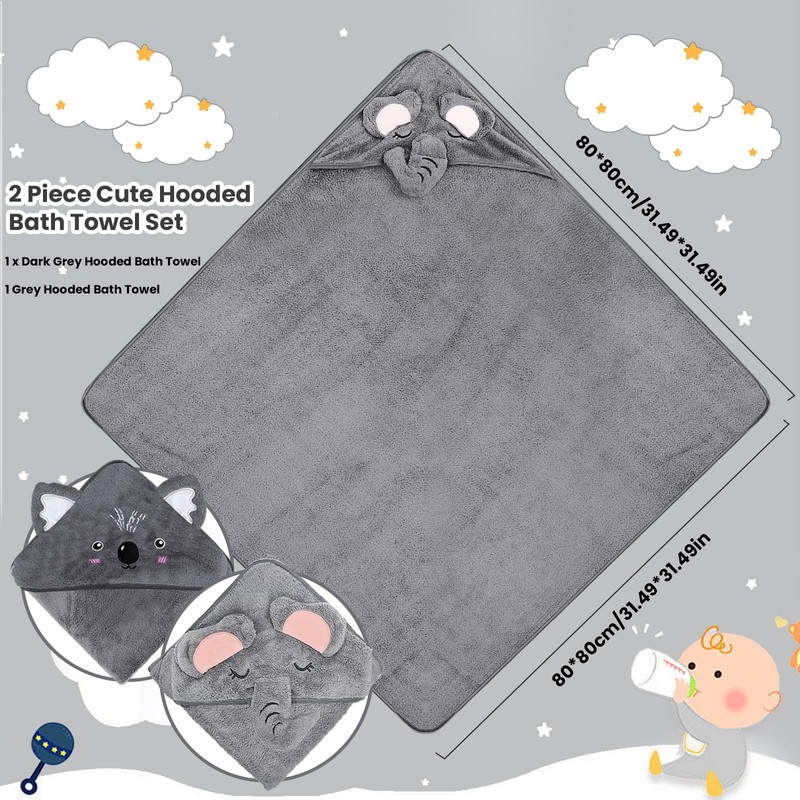 - [Bath Towel Set for Kids] This bath towel set for kids comes in two pieces. There are two models to choose from: the first contains a grey hooded bath towel x 1 and a dark grey hooded bath towel x 1. The second contains a pink hooded bath towel x 1 and a blue hooded bath towel x 1. You can choose from these two colours which bathrobe you and your child like best. This bathrobe is lightweight and comfortable for your daily needs.