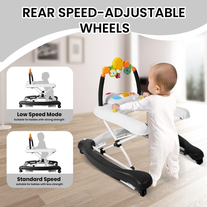 Boyro Baby Baby Walker, 5-in-1 Baby Walkers for Boys and Girls 6-12 Months with Bouncer, Removable Footrest, Feeding Tray & Music, Foldable & Adjustable Activity Walker for 6-18 Months Toddler Infant