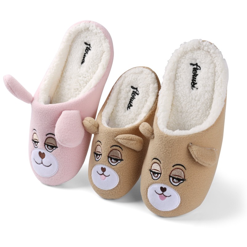 - adorable sleepy eye slippers slip-ons teddy bear design.