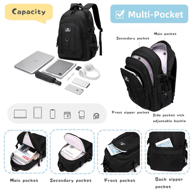 - Load what you need: This boys backpack features 1 * Main pocket, 2 * Front pockets, and 2 * Side pockets with adjustable buckle; Padded pouch in main pocket to hold laptop up to 15 inch; Front pockets to hold commonly used items for quick access