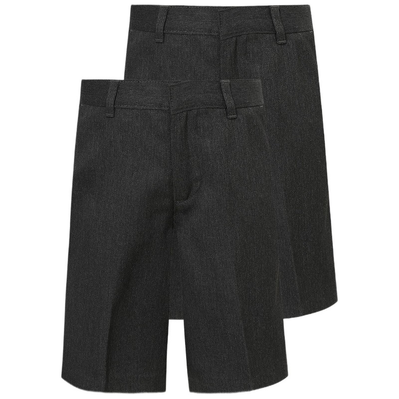 Boys Twin-Pack School Shorts - Adjustable Waist - Black Grey Navy - Ages 2-14y