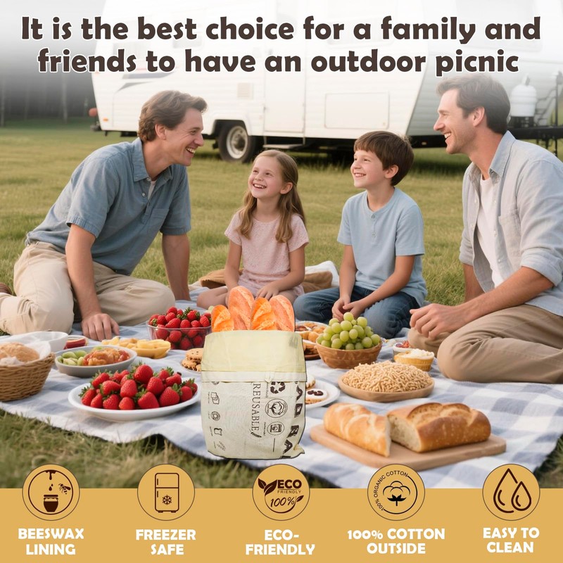BOYUMING Beeswax Bread Storage Bags, Reusable Food Wrap with Cotton Blend - Kitchen Storage Solution