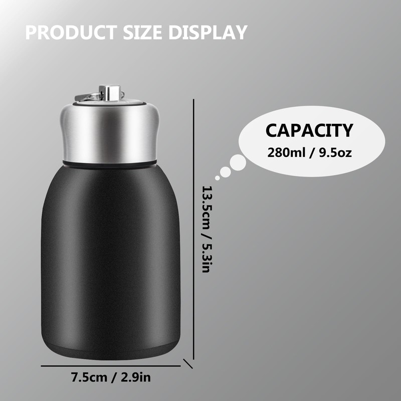 Boziee 280 ml Small Stainless Steel Thermos Flask, BPA-Free, Portable Insulated Flask for Hot and Cold Drinks (Black)