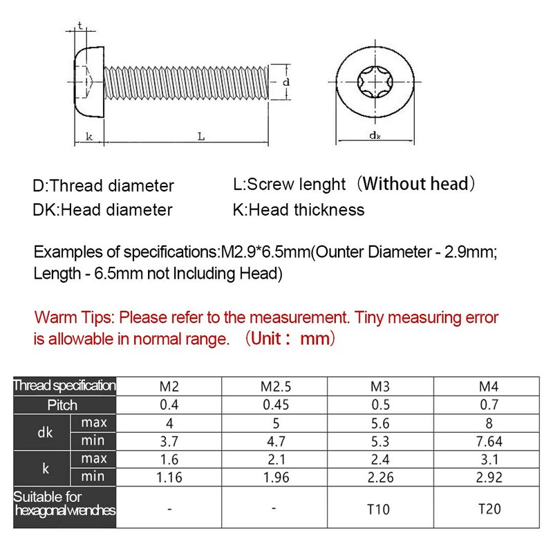 - Package includes: M2.5 x 8 mm, 100 pieces