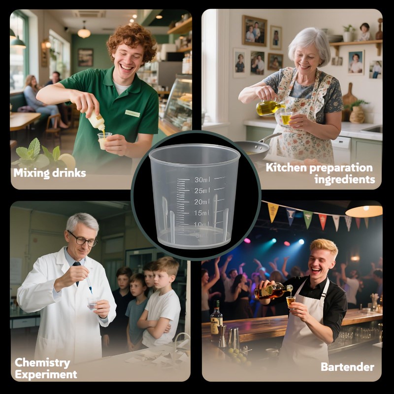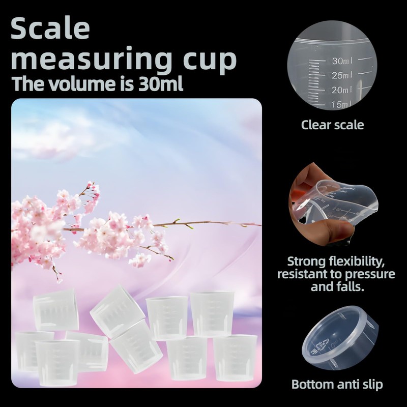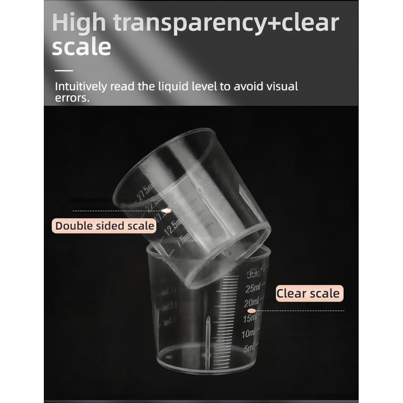 - ✅ Safe & Crystal Clear Measurements: Made from durable, BPA-Free food-grade plastic – no chemical smells or toxins. Features easy-to-read dual scales (ml & oz) on each cup (5-30ml / 7.5-27.5ml) for precise pouring of liquids, resins, paints, or ingredients, reducing spills and waste.