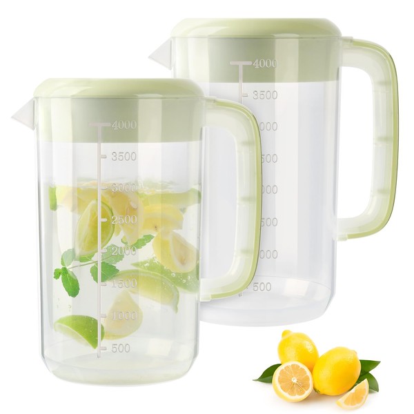 BPFY 1 Gallon 4 Litre Clear Plastic Pitcher with Lid, 2 Pack Clear Water Pitcher for Cold Drinks, Iced Tea Pitcher for Lemonade, Iced Tea, Milk, Juice, Beverages.