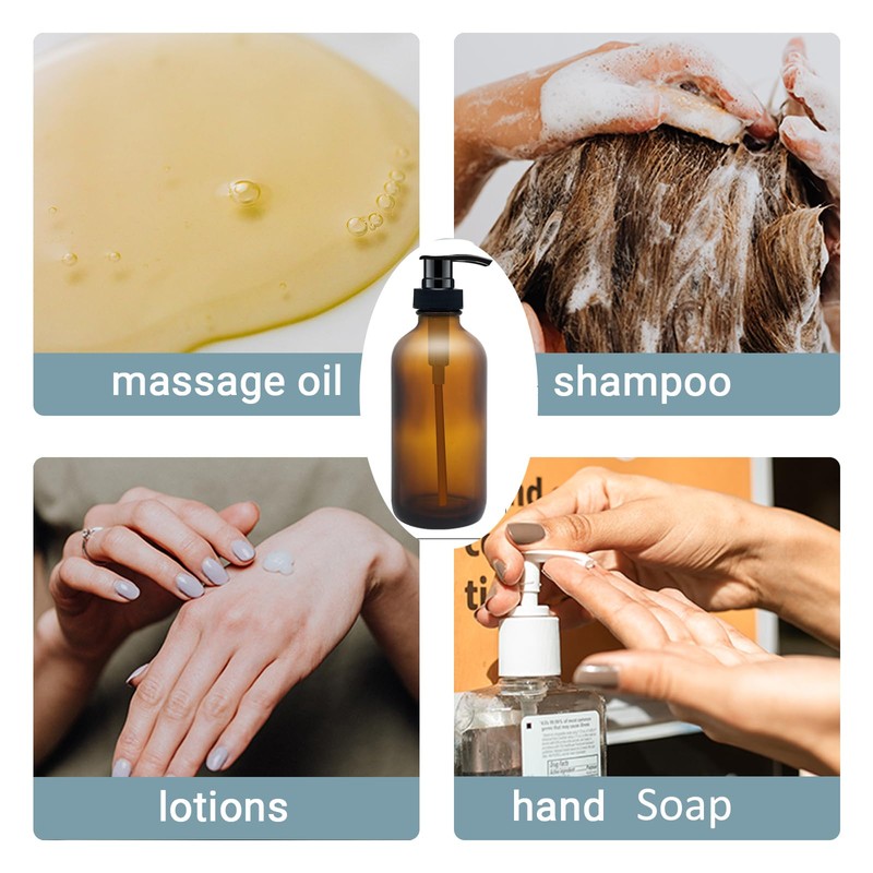 Useful: amber glass bottles with pump perfect for shampoo, cream, conditioner, essential oils, lotions, aromatherapy oil.