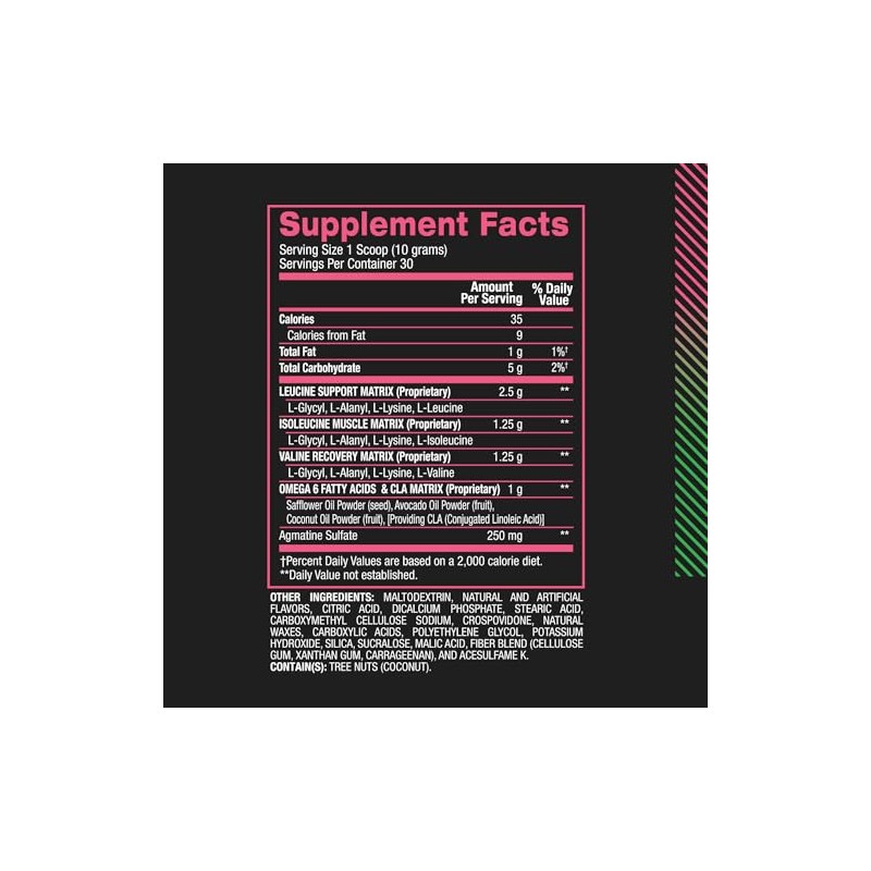 - FAST-ABSORBING BCAA BLEND: Our BCAA powder formula contains a fast-absorbing branched-chain amino acid (BCAA) blend and CLA Matrix that helps to support muscle recovery while preventing muscle breakdown.*