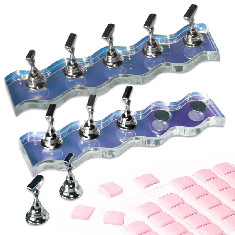 • 【Press on Nail Stand】You will get 2 sets/10 pcs Aurora super magnetic press on nail stand and 96pcs pink reusable adhesive putty. 1 set of nail display stand including 5 nail stands and 1 acrylic base. It perfect for practicing painting nails,displaying your nail art.