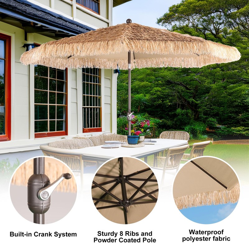 BPS 9FT Thatch Patio Umbrella, Tiki Style Outdoor Umbrella with Crank Lift for Poolside, Backyard, Beach - Natural Straw Look (No Base)