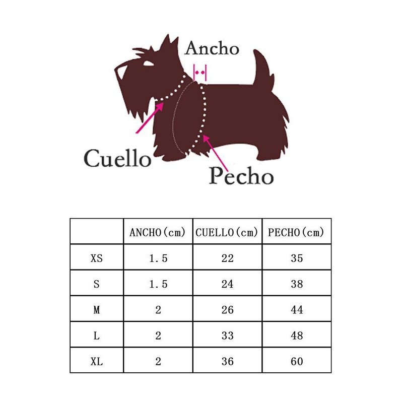 XS: Width: 1.5 cm - Neck: 22 cm - Chest: 35 cm.
