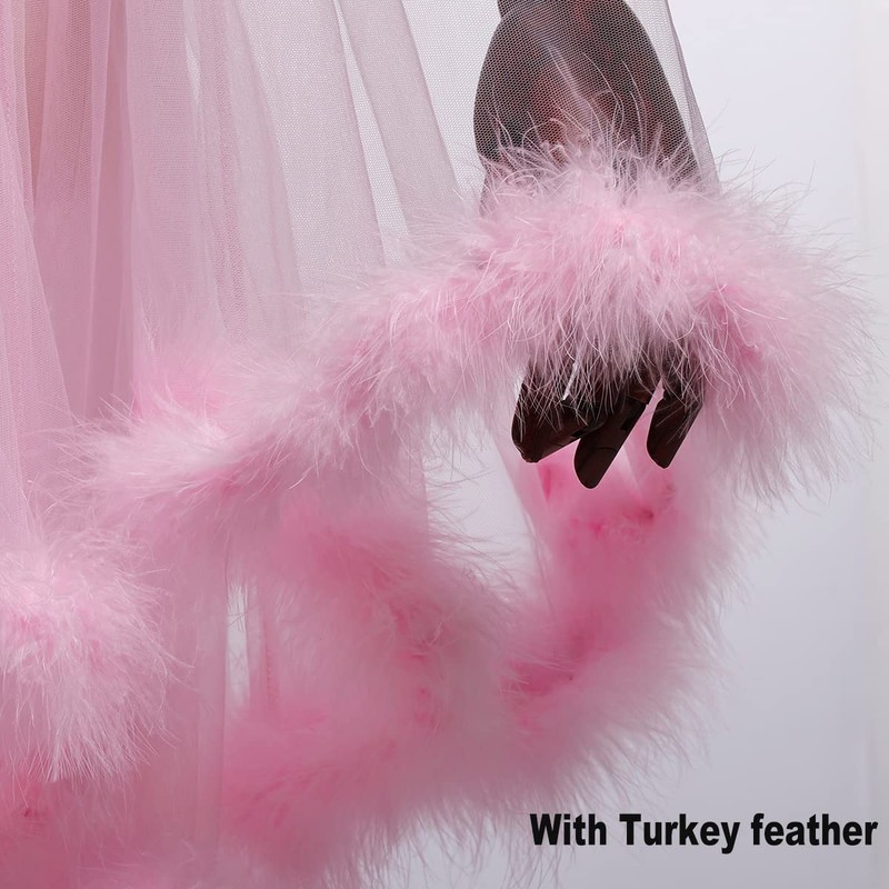 - This sheer sexy robe is made of Tulle and Turkey feather